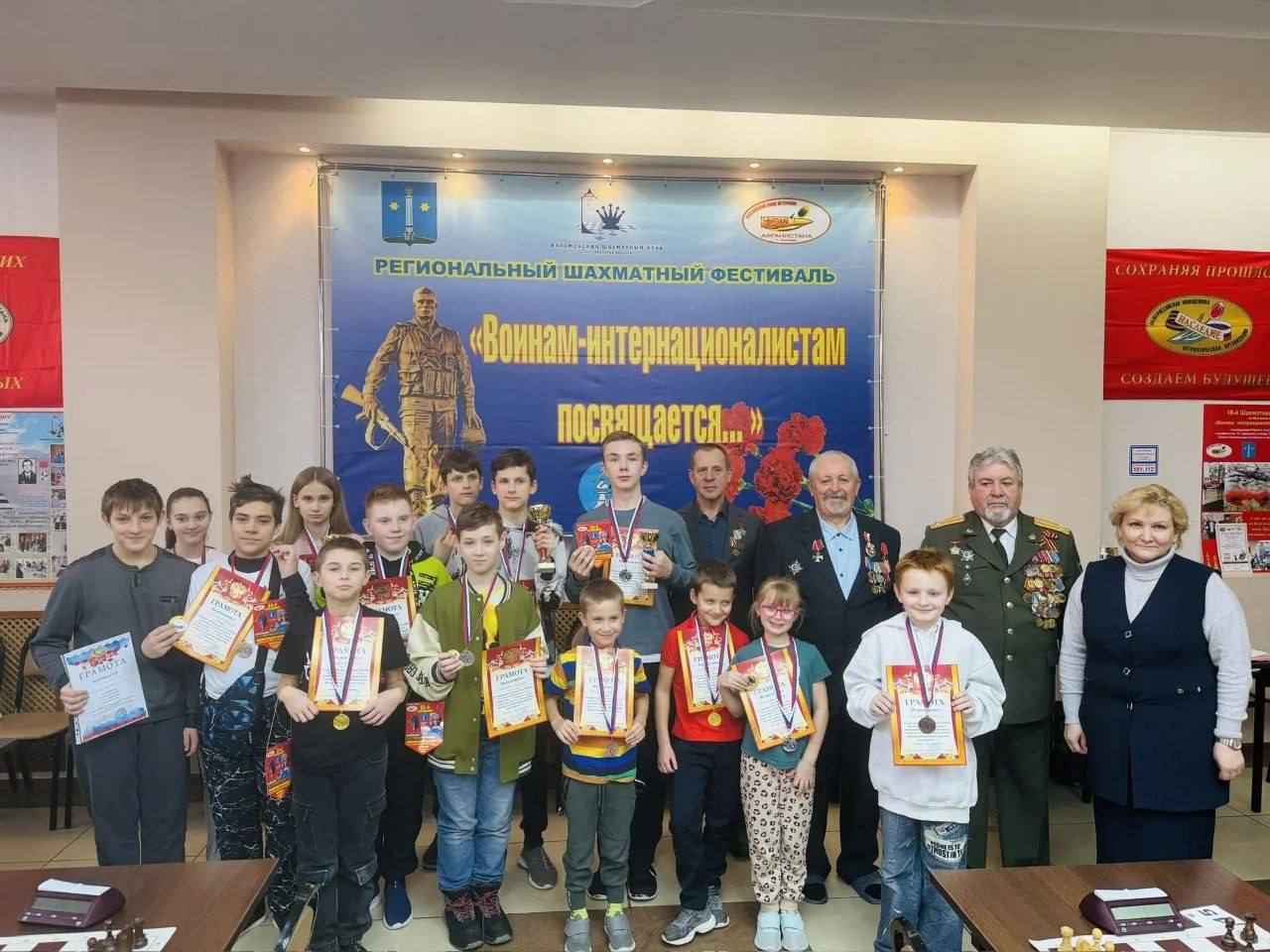 Детский блицтурнир по шахматам25.02.2026 21 февраля 2026 года в МБУ МСК "Лидер" состоялся детский блицтурнир по шахматам, посвящённый памяти участников локальных войн и конфликтов, 37 годовщине вывода Советских войск из Афганистана "Воинам интернационалистам посвящается".В турнире приняли участие 28 школьников различных возрастов из 5 городов: Москва, Коломна, Озёры, Воскресенск и Луховицы. Швейцарская система 8 туров. Контроль времени 5 мин +3 сек/ход. Турнир проводился 23 год подряд и прошёл в острой борьбе. В результате призы детского блицтурнира в различных номинациях завоевали: Категория Абсолют: 🥇 Бакин Фёдор (Озеры) - 7 очков 🥈 Фоломин Егор (Коломна) - 7 очков 🥉 Лиманов Евгений (Коломна) - 6 очков Категория Старшие школьники: 🥇 Бакин Валерий (Озеры) - 6 очков 🥈 Зайцев Николай (Коломна) - 5 очков 🥉 Аронов Владислав (Коломна) - 5 очков Категория Девушки: 🥇 Жаворонкова Ева (Воскресенск) - 5 очков 🥈 Русоброва Елизавета (Коломна) - 4,5 очка 🥉 Уткина Вероника (Коломна) - 4 очка Категория Младшие школьники: 🥇 Журавлев Иван (Коломна) - 4,5очка 🥈 Коршунов Михаил (Луховицы) - 4 очка 🥉 Баринов Дмитрий (Воскресенск) - 4 очка Категория Дошкольники: 🥇 Самсонов Самсон - 3,5очка 🥈 Багрянцева Мария - 3очка 🥉 Багрянцев Иван - 2 очка (Все Коломна) Все призеры получили дополнительно Вымпелы и памятные знаки. Призы от Российского Союза Ветеранов Афганистана были большие магнитные шахматы и их получили "Самый юный Чемпион" - Самсонов Самсон. "Приз за волю к Победе"- Набатчиков Константин, набравший 4,5 очка. Приз "Большая книга шахмат" за отличное судейство - Бубунец Светлана Олеговна. Награды призерам и победителям турнира вручал Председатель Коломенского городского отделения Российского Союза Ветеранов Афганистана - Солдатов Владимир Иванович. Блицтурнир завершился. Мы "Помним и Гордимся!" |
